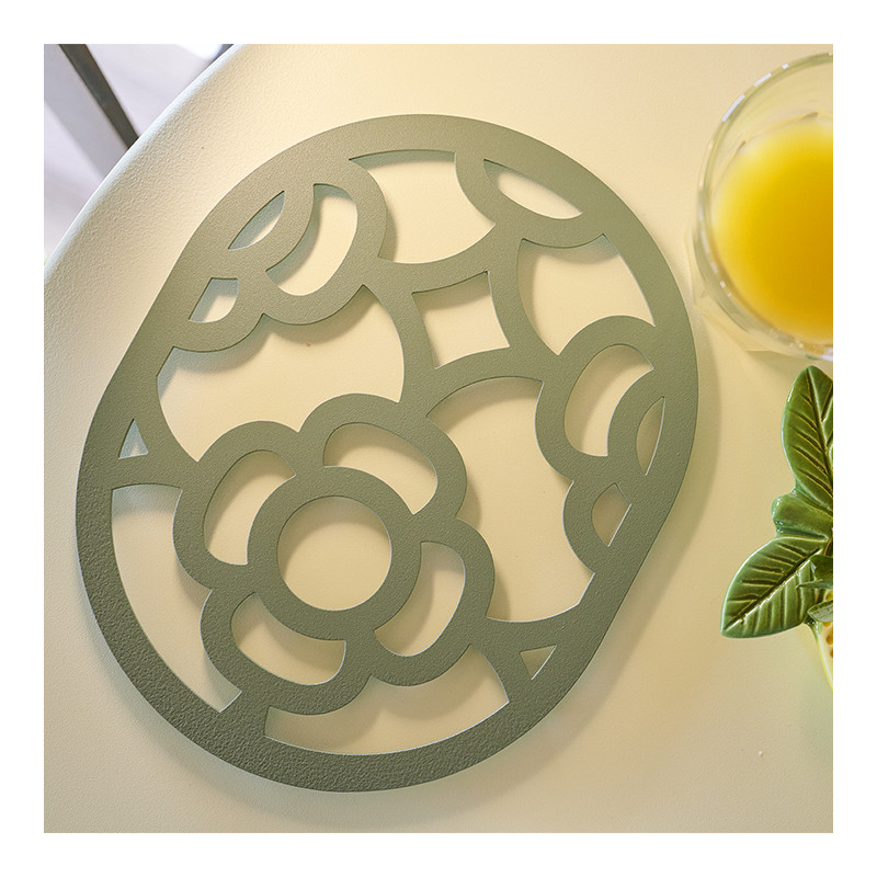 Le dessous de plat 22 x 17,5 de la collection "Lorette" de Fermob incarne l'esprit de la marque avec son motif inspiré des moucharabiehs et sa finesse ornée. Réalisé en métal par découpe laser, il dévoile un monogramme floral raffiné, reflétant l'excellence industrielle. Conçu pour un usage outdoor, il résiste aux UV et aux conditions climatiques. Cet accessoire, fabriqué en France, allie utilité et plaisir esthétique, s'intégrant parfaitement à tout intérieur ou extérieur contemporain, notamment avec une table de la collection Calvi pour une touche d'évasion audacieuse.
