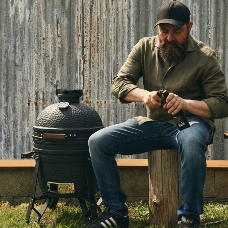 Le barbecue kamado The Bastard Urban Compact Ø33 cm allie puissance et compacité. Sa céramique haute résistance assure une cuisson uniforme et durable. Idéal pour 4 à 6 convives, il s’intègre parfaitement sur balcon ou terrasse. Les trappes d’aération précises garantissent un contrôle optimal de la température. Son design noir mat et son entretien facile en font un indispensable du barbecue urbain.