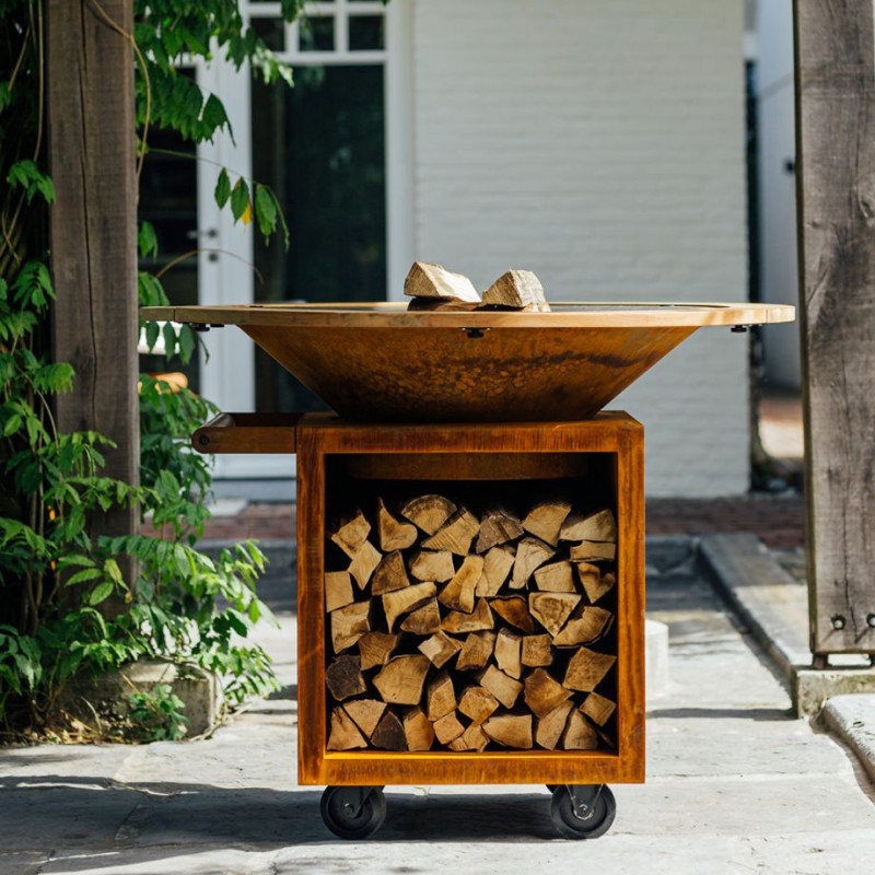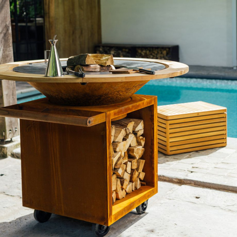 L'OFYR Fire Guard Ring 100 est un anneau en bois conçu pour les braseros OFYR de 100 cm. Avec une largeur de 12,5 cm et un diamètre extérieur de 128 cm, il offre une protection contre la chaleur de la plaque de cuisson tout en servant de table d'appoint pour poser verres ou petits plats. Facile à installer grâce à ses six attaches en acier, il se monte et se démonte aisément. Il est recommandé de le ranger à l'intérieur après utilisation et de l'entretenir régulièrement avec de l'huile pour préserver sa durabilité.