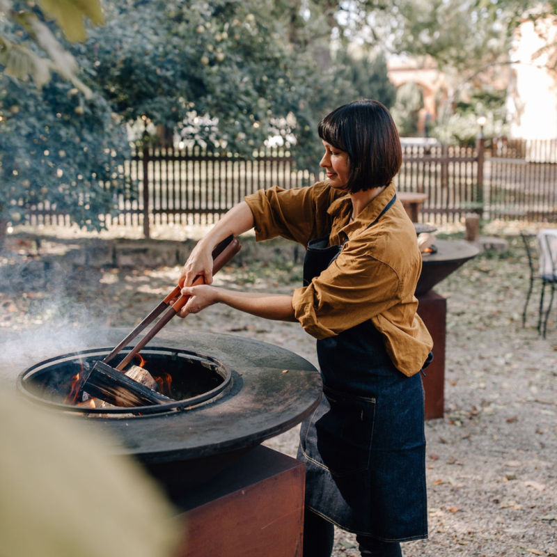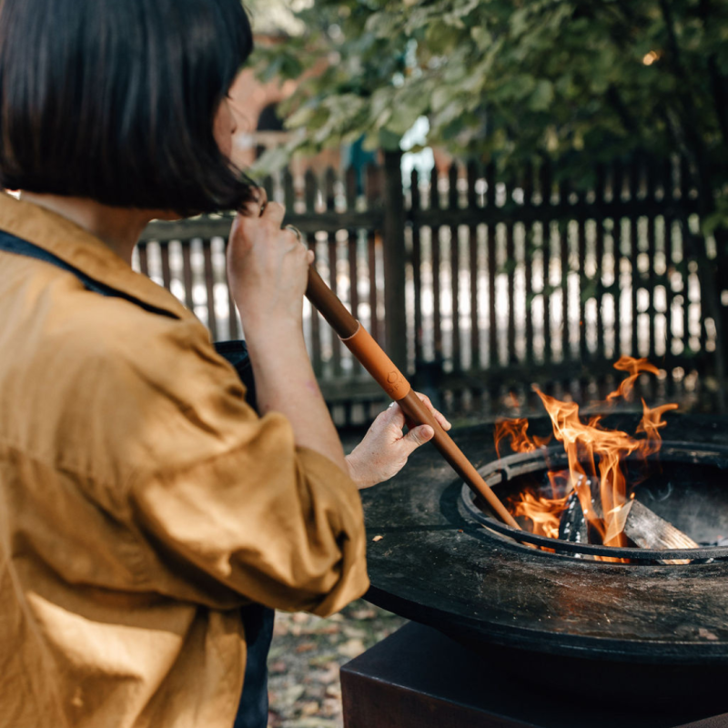 Le Set Buffadoo OFYR est un ensemble élégant, comprenant un soufflet à bouche, une pince à bûches en métal, et un support. Le soufflet, doté d'une poignée en cuir et d'un embout en silicone avec un système anti-retour de fumée, stimule les flammes tout en réduisant la fumée lors de l'utilisation du brasero OFYR. La pince facilite l'ajout et la manipulation des bûches pendant la combustion, assurant une expérience de cuisson optimale. Un accessoire essentiel pour les amateurs de barbecue et de cuisine en plein air.
