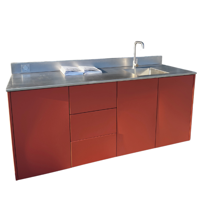 Découvrez la cuisine d'extérieur ASPIC, conçue avec des matériaux de qualité et durables : fabrication sur-mesure, personnalisable avec 4 plans de travail au choix et 61 coloris disponibles.