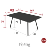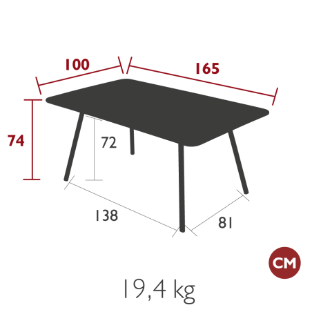 La table Luxembourg FERMOB 165 × 100 cm est une pièce maîtresse de la collection éponyme, alliant élégance et fonctionnalité. Elle offre un plateau rectangulaire en aluminium à lattes, pouvant accueillir confortablement de 6 à 8 convives. Sa structure en aluminium tubulaire est légère, résistante aux intempéries et aux UV, assurant une durabilité optimale pour un usage extérieur. Cette table est idéale pour des repas conviviaux en plein air, apportant une touche de raffinement à votre jardin ou terrasse.