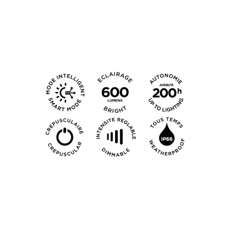 2 - Mode crépusculaire (réglable de 10 à 600 lumens)