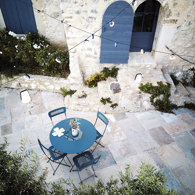 La guirlande lumineuse L1200 Hoopik de Fermob éclaire et décore avec style les jardins et terrasses. Composée de 8 anneaux lumineux orientables, elle crée un décor poétique sur 6 m de câble noir mat. Dotée d'un interrupteur tactile et Bluetooth, elle offre une température d'éclairage chaleureuse et ajustable (3000°K) de 10 à 100%. Son fort pouvoir éclairant (8x120 Lm) la rend fonctionnelle comme luminaire suspendu. Conçue pour l'extérieur (IP54), elle se range facilement dans son packaging hivernal. La guirlande L1200 Hoopik allie esthétique et performance pour sublimer vos soirées.