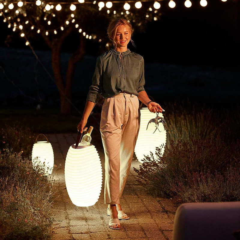 Le Kooduu Synergy 65 offre un design polyvalent 3 en 1 : lampe LED à intensité variable, haut-parleur Bluetooth et porte-boisson/refroidisseur de vin. Grâce à la Bright Sound Technology™, le haut-parleur combine une lumière chaleureuse avec un son de haute qualité. Disponible en trois tailles, tous les Synergy peuvent être associés pour un son stéréo sans fil. Avec une batterie rechargeable intégrée, le Synergy est 100% portable, offrant musique et ambiance lumineuse où que vous soyez. Un choix élégant et fonctionnel pour l'intérieur ou l'extérieur.