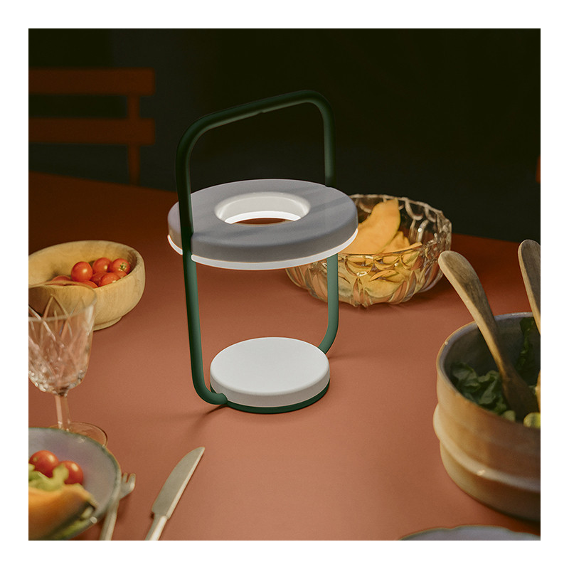 La lampe H30 Ulli de Fermob, héritière de l'emblématique lampe baladeuse, allie originalité et fonctionnalité avec son design inspiré des lampes à pétrole et sa technologie LED sans fil. Sa silhouette minimaliste et colorée cache une puissance lumineuse de 220 Lm, magnifiée par un diffuseur en polycarbonate. Maniable et polyvalente, elle s'adapte à tous les environnements, de votre jardin à la plage. Son interrupteur tactile permet de régler l'intensité et la température de couleur, tandis que sa recharge rapide en moins de 4 heures assure une utilisation sans interruption. Robuste et éco-conçue, la lampe H30 Ulli est prête à vous suivre dans toutes vos aventures, durablement.