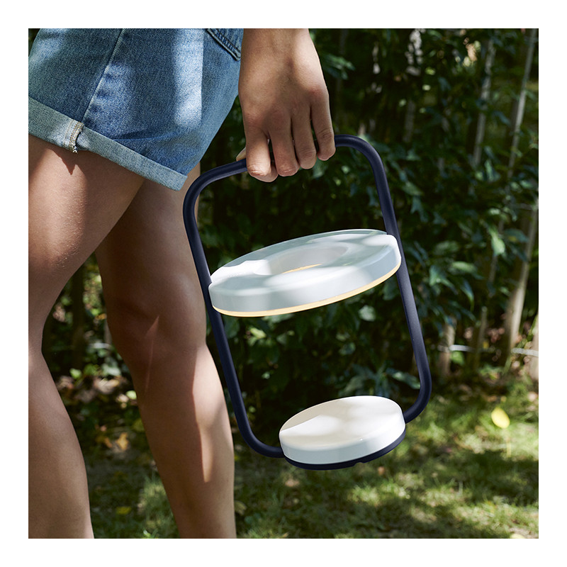 La lampe H30 Ulli de Fermob, héritière de l'emblématique lampe baladeuse, allie originalité et fonctionnalité avec son design inspiré des lampes à pétrole et sa technologie LED sans fil. Sa silhouette minimaliste et colorée cache une puissance lumineuse de 220 Lm, magnifiée par un diffuseur en polycarbonate. Maniable et polyvalente, elle s'adapte à tous les environnements, de votre jardin à la plage. Son interrupteur tactile permet de régler l'intensité et la température de couleur, tandis que sa recharge rapide en moins de 4 heures assure une utilisation sans interruption. Robuste et éco-conçue, la lampe H30 Ulli est prête à vous suivre dans toutes vos aventures, durablement.