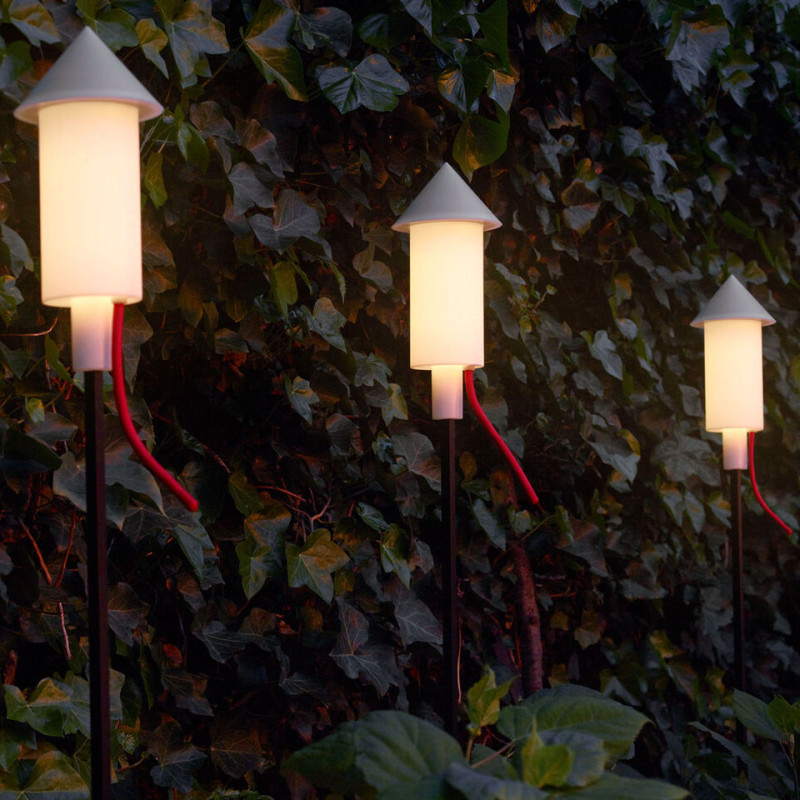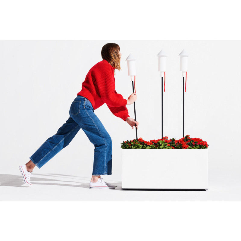 Le Prêt a Racket de Fatboy est un ensemble de trois lampes solaires d’extérieur en forme de fusées ludiques à planter dans le sol. Elles s’allument automatiquement à la tombée de la nuit et s’éteignent après 6 heures grâce à une minuterie intégrée. Leur lumière chaude (2700 K) crée une ambiance conviviale idéale pour le jardin ou la terrasse. Entièrement solaires, elles se rechargent le jour, sans câbles, et sont conçues pour être durables et réparables. Un simple double-tirage sur la cordelette rouge emblématique permet de les rallumer pour 6 heures supplémentaires.