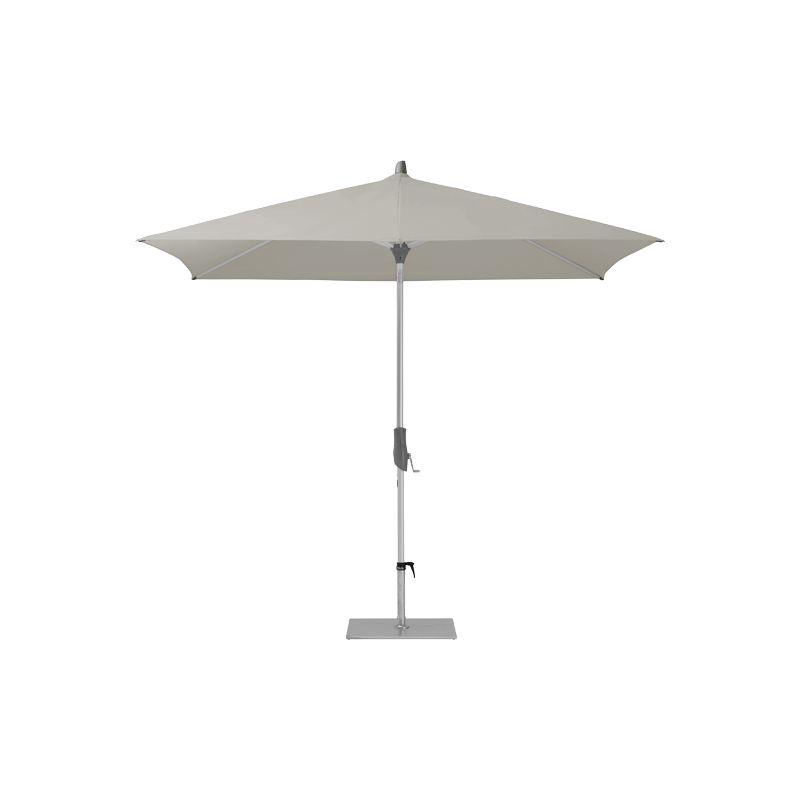 Qu’est-ce qui a existé en premier ? La forme ou la fonction ? Pour ALU-TWIST easy, la réponse est la suivante: les deux. Car ce parasol allie esthétique et confort et est idéal pour les espaces extérieurs en angle ou comme extension à un parasol géant GLATZ. Son toit s’ouvre aisément à l’aide d’une manivelle, et il peut s’incliner en continu grâce à un mécanisme de rotation. L’armature et les baleines sont en aluminium anodisé naturel. Quel que soit l’endroit où il est placé, il vous apportera toujours suffisamment d’ombre et une note de modernité intemporelle.