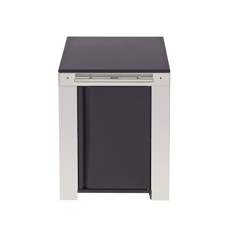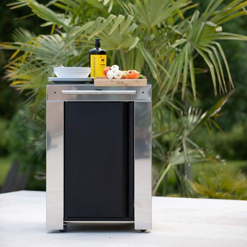 La desserte Félix en noir et inox est un meuble fonctionnel pour votre cuisine extérieure. Elle peut accueillir toute plancha de moins de 60 cm et sert également de plan de travail. Sa construction robuste et élégante s'adapte parfaitement à votre espace extérieur. Idéale à côté d'un barbecue ou d'autres appareils de cuisine, elle offre une surface de préparation supplémentaire pratique et se déplace facilement. Optimisez votre cuisine extérieure avec la desserte Félix.