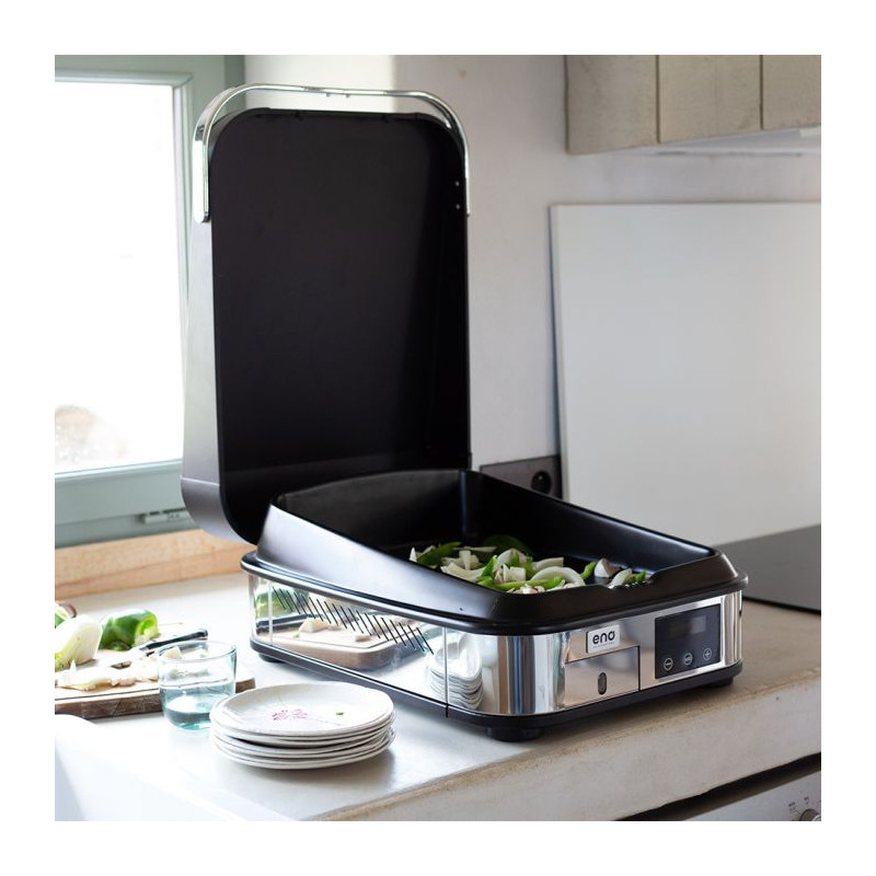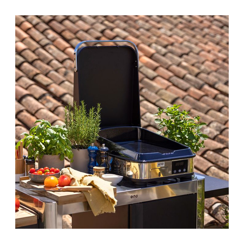 Découvrez la plancha électrique Enosign, compacte et puissante, dotée d'une plaque en fonte émaillée de 40 cm pour des cuissons savoureuses. Son design élégant en inox marine en fait un choix idéal pour les espaces extérieurs restreints. Profitez de cuissons saines et sans ajout de matière grasse, avec une plage de température allant de 80°C à 360°C. La certification alimentaire assure une utilisation sûre, tandis que son entretien facile et ses fonctionnalités pratiques en font un compagnon de cuisine parfait pour des moments conviviaux en extérieur. Fabriquée en France, cette plancha offre qualité et performance.