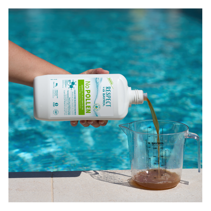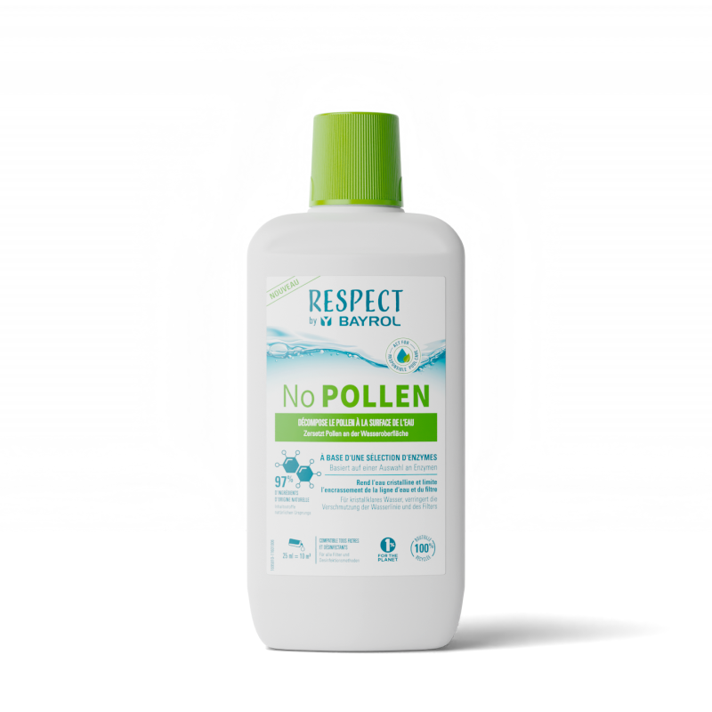 No POLLEN est un produit incontournable pendant la saison du pollen pour garantir une eau cristalline avec moins de travail. La ligne d‘eau et le filtre seront préservés de l‘encrassement dû au pollen. No POLLEN est un liquide concentré, sans colorants naturellement brun, à base d'enzymes (actifs naturels). Compatible avec tous types de désinfectants et filtres (à sable ou cartouche).