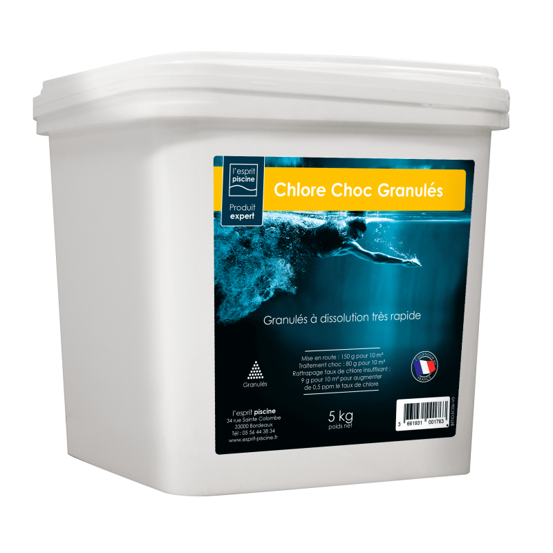 Le Chlore choc en granulés est un désinfectant puissant à dissolution très rapide, idéal pour une désinfection choc de l’eau de piscine. Il élimine efficacement les micro-organismes (bactéries, virus, algues) sans laisser de résidus.
