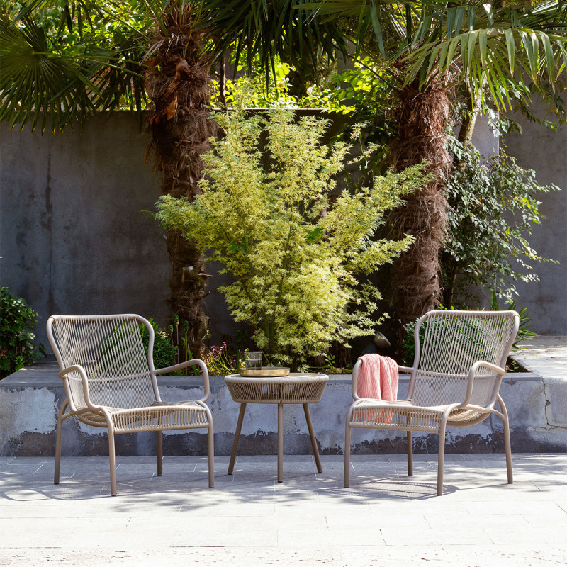 Le salon LOOP de Vincent Sheppard, comprenant 2 fauteuils lounge et 1 table basse, allie style et confort. Les fauteuils offrent un design moderne et une assise spacieuse, tandis que la table basse se révèle être pratique. Le cordage est résistant aux intempéries et aux rayons UV, et rend le mobilier léger et empilable. Idéal pour créer un coin détente élégant à l'intérieur ou à l'extérieur.